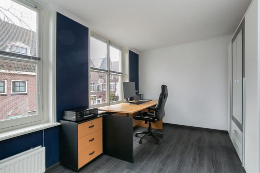 Zoals eerder vermeld, is vanuit de living een tweede kamer te betreden. Deze is nu ingericht als werkkamer, maar deze kun je uiteraard ook als slaapkamer of extra opbergruimte inrichten. Deze kamer is voorzien van een keurige grijze laminaatvloer en klassieke grote ramen, vergelijkbaar met de woonkamer. In de hoofdslaapkamer tref je op het plafond een artistieke oorspronkelijke plafondschildering aan, die is uitgelicht door middel van lichtspots. De plafondschildering staat geregistreerd bij de gemeente.
